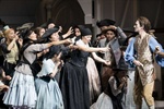 Dafür hat es sich Almaviva zum Hobby gemacht, eine Schürze nach der anderen zu jagen. Aktuell gilt sein gesteigertes Interesse  Susanna (Tetiana Miyus), Figaros Verlobten. Dabei steht aber die Figaros Hochzeit ins Haus! Dann kommt noch der liebestollte Jüngling Cherubino (Anna Brull) dazu, der der Gräfin an die Wäsche will. Marcellina (Yuan Zhang) will wiederum Figaro zur Ehe mit ihr nötigen, wird aber letztlich zusammen mit ihrem Liebhaber Bartolo (Wilfried Zelinka) zu Eltern. Das Drama nimmt seinen Lauf.