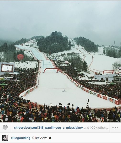 Sichtlich beeindruckt zeigte sich die britische Sängerin Ellie Goulding von der der Kulisse des Hahnenkamm Rennens in Kitzbühel. „Killer view!“, kommentierte sie ihren Blick auf die legendäre Streif.
