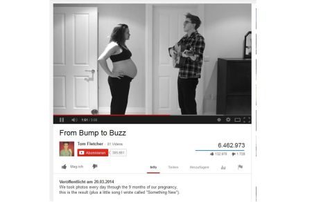 Dieses Video berührt und lässt die Tränen hemmungslos fließen. Aus der Teenager-Liebe zwischen Giovanna und Tom wurde mehr, als vielleicht erwartet. Die beiden heirateten und ein Baby kündigte sich an. Der stolze Vater in spe, der auch ein talentierter Musiker und Songwriter ist, fasste seine Freude und seine Bedenken in Worte und Noten und daraus wurde das You Tube Video „From Bump to Buzz“ (Von Bauch zu Buzz), zu finden unter http://www.youtube.com/watch?v=yJ7-v7xVm3I.