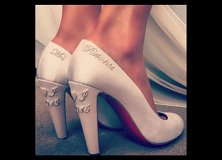 Jetzt ist es offiziell.“, lässt Hotelerbin Nicky Hilton die Welt wissen. Ihre Louboutins ziehrt der Schriftzug „Mrs. Rothschild“ und auf dem Absatz ist das Hochzeitsdatum verewigt.