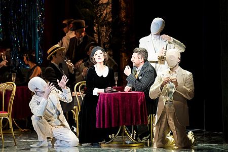 Diese Geschichte muss in Paris spielen, in ihren sündigen Etablissements, die sich feiner geben, als sie sind. Verstärkt wird das Bild der überbordenden Lebesucht durch den Transport der Handlung in die dreißiger Jahre des letzten Jahrhunderts (hervorragende kostümische Umsetzung von Brigitte Reiffenstuel). Wohl frei nach dem Motto „Ein wenig Travestie schadet nie.“, wird dem geneigten Publikum auch ein Herr in flotten Damenkleidern präsentiert. Wozu? Das weiß man nicht. Vielleicht galt es eine Quote zu erfüllen.